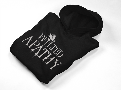 Black drip hoodie with signature Wilted Apathy logo printed across the front giving it a drippy design.